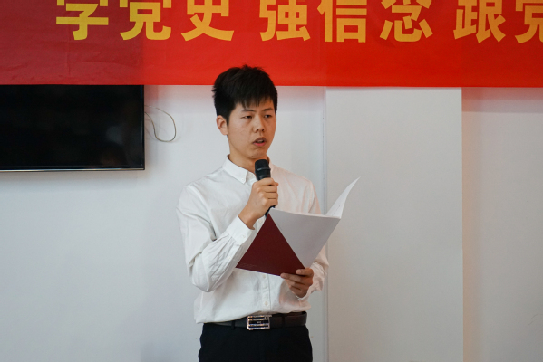学生会(研究生会)功能型党支部书记吴天宇、副书记张悦分别分享了党史学习教育的心得体会。吴天宇提到,今天在此成立功能型党支部,正是一个联结学习和实践的契机。党支部将承载百年党史的精神激励,汇聚全院党员学生骨干的澎湃动能,充分发挥党员先锋模范作用和党支部战斗堡垒作用。张悦提到,要在党史中学出情感、学出认同、学出向往,以自身实际感悟解读“学史明理、学史增信、学史崇德、学史力行”的深刻内涵。
