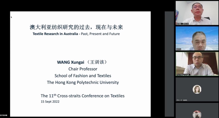 9月15日,第十一届海峡两岸纺织学术论坛在苏州大学召开。本次论坛由苏州大学纺织与服装工程学院主办,由于全球“新冠肺炎”流行,本学术论坛已经中断2年,此次苏州大学纺织与服装工程学院赓续本论坛,为海峡两岸纺织类高校的同行和学生提供了共同分享和创新交流的机会。会议采用线上的形式,纺织与服装工程学院院长张克勤教授为会议主席。