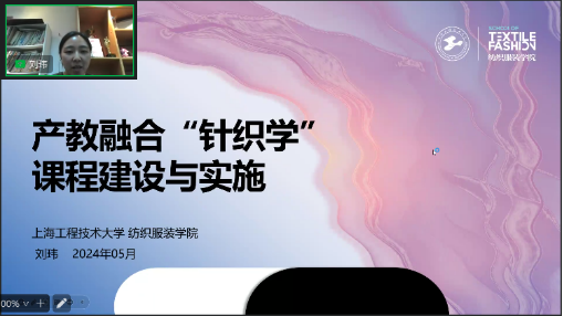 2024年5月21日下午,纺织类虚拟教研室系列联合活动在虚拟教研室工作平台举行。此次联合活动由纺织工程专业虚拟教研室主办,邀请上海工程技术大学刘玮教授以“产教融合‘针织学’课程建设与实施”为题作主题报告。来自纺纱课程群虚拟教研室、纺织材料课程群虚拟教研室、纺织工程专业虚拟教研室、北部地区高校纺织工程专业虚拟教研室、全国纺织类课程思政虚拟教研室、上海市服装专业基础课程群虚拟教研室、浙江省现代纺织专业建设虚拟教研室的60余位教师参加了研讨会。会议由苏州大学纺织与服装工程学院副院长陈廷教授主持。