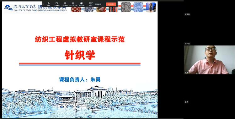2022年9月28日下午,“纺织工程专业虚拟教研室”专业建设研讨会及《针织学》示范课在虚拟教研室工作平台举行。研讨会邀请绍兴文理学院邹专勇教授作主题发言,示范课邀请绍兴文理学院朱昊副教授讲授,来自苏州大学、江南大学、浙江理工大学、南通大学、上海工程技术大学、绍兴文理学院、常熟理工学院、盐城工学院等8所高校的30多位教师参加了会议。会议由苏州大学纺织与服装工程学院副院长陈廷教授主持。