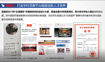 邹老师首先介绍了绍兴文理学院在师资队伍、专业设置、学科建设、平台建设等方面的发展情况。然后,邹老师叙述了绍兴文理学院纺织工程专业从最初的专科招生到省重点建设专业,到国家特色专业,再到国家一流本科专业建设点的发展历程。最后,邹老师重点介绍了绍兴文理学院结合地方特色培养纺织工程专业应用型工程技术人才的经验。邹老师指出,专业的发展离不开地方纺织产业的发展,绍兴文理学院紧密结合地方特色,设置体现“材料+工程+设计”相融合课程,以产教融合服务专业人才培养,打造学科竞赛平台赋能创新人才培养,拓展第二课堂提高学生专业实践能力,营造浓厚学术氛围提升学生专业素养,教师潜心教学支撑专业人才培养,最终实现了应用型工程技术人才的高质量培养。