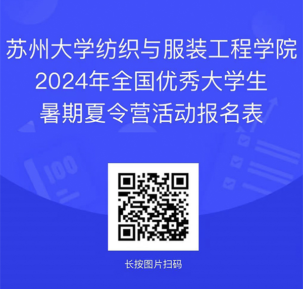 为增进全国优秀大学生对我院的了解,引领同学们探索纺织学科前沿,增强科研兴趣,提高科学素养,我院拟在2024年8月6日至8月8日举办“全国优秀大学生夏令营”活动,热烈欢迎有志于来苏州大学攻读硕士学位的优秀学子们报名参加。