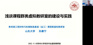 接下来,研讨会进入主题报告阶段。教育部高等学校工科基础课教学指导委员会委员、山东大学材料科学与工程学院孙康宁教授以“浅谈课程群类虚拟教研室的建设与实践”为题,从对课程类虚拟教研室的理解、虚拟教研室前期探索工作、组织与内容的建设工作以及存在问题等方面详细分享了材料与机械制造基础课程群虚拟教研室的建设与运行经验。