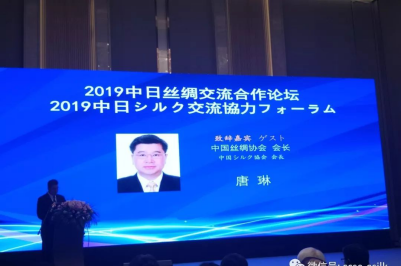 中国丝绸协会副会长王正喜致辞,他代表江苏省丝绸协会对此次论坛的召开表示热烈欢迎和祝贺。他介绍了江苏省的丝绸历史发展和与日本的贸易和文化等方面的密切联系。并热切展望未来,正如习近平在大阪G20会议中所说中国将进一步推进对外开放,呼吁各国协力共进,合力打造高质量世界经济。