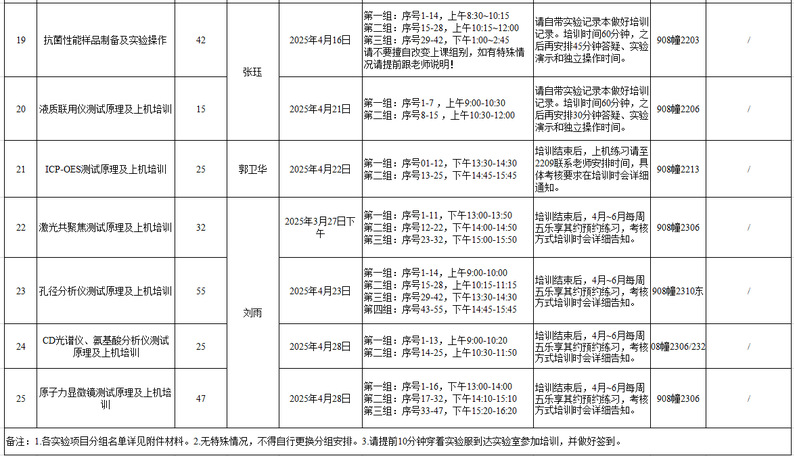 (1)2025年春学期大仪培训—实验项目、培训时间及分组安排汇总.xlsx